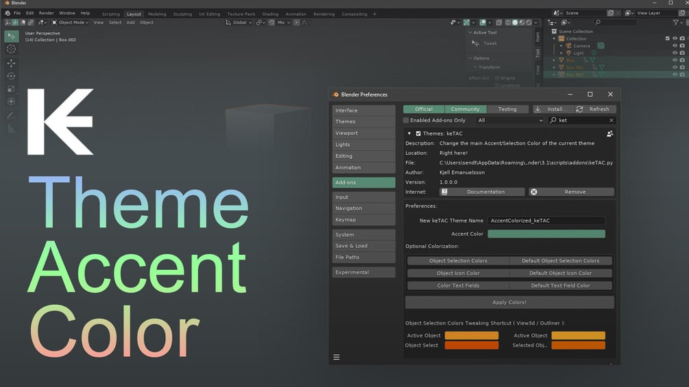 keTAC - Theme Accent Color Add-on for Blender